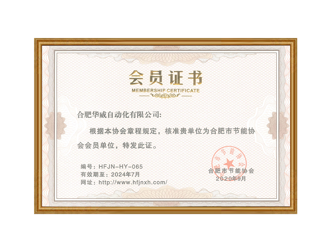 合肥市节能协会会员单位证书