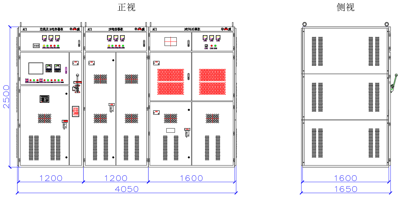 说明:1、设备中的柜体尺寸可根据用户现场实际情况调整;